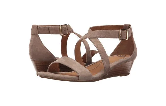 A strappy, soft suede sandal, this pair is casual enough to wear with summer dresses, skinny jeans, and shorts. It has a wee bit of a wedge heel—1.5 inches. It’s ideal if you want a little more height than a flat and a little more stability than a stiletto—or if you're looking for a little bit of a lift.